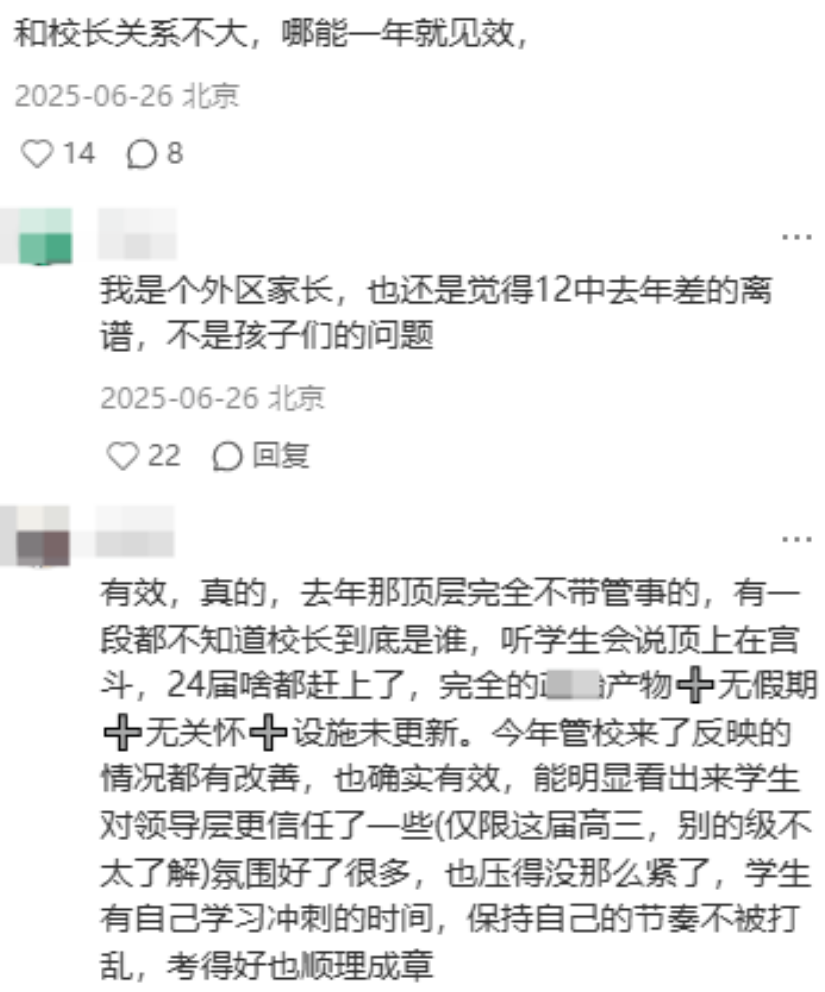 2024 年高考:高分段表现低于家长预期,有学生反馈当时学校管理层不稳定,教学节奏混乱,师生高压消耗严重;
